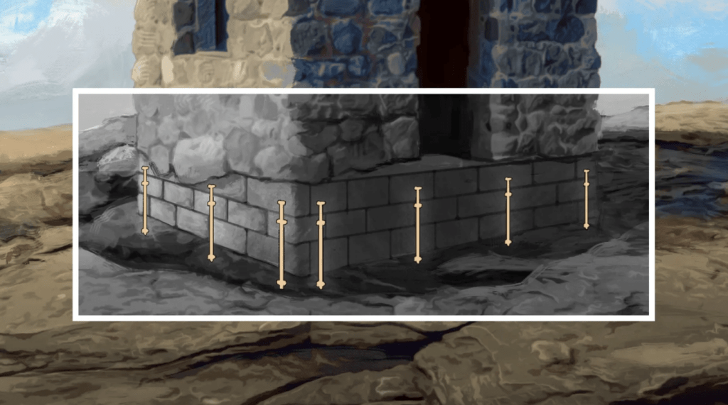 - A strong and reliable connection between the ground and a foundation is essential if a structure is to remain sturdy and stable over time. And for particular types of construction, anchor pins and steel rods can be used to attach the foundation of a building to “bedrock,” the hard, solid rock beneath surface materials such as soil and gravel.