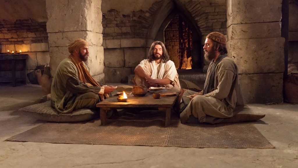 - The Savior accepted that night the invitation to enter the house of His disciples. He sat at meat with them. He took bread, blessed it, broke it, and gave it to them. Their eyes were opened, and they knew Him. Then He vanished out of their sight.
