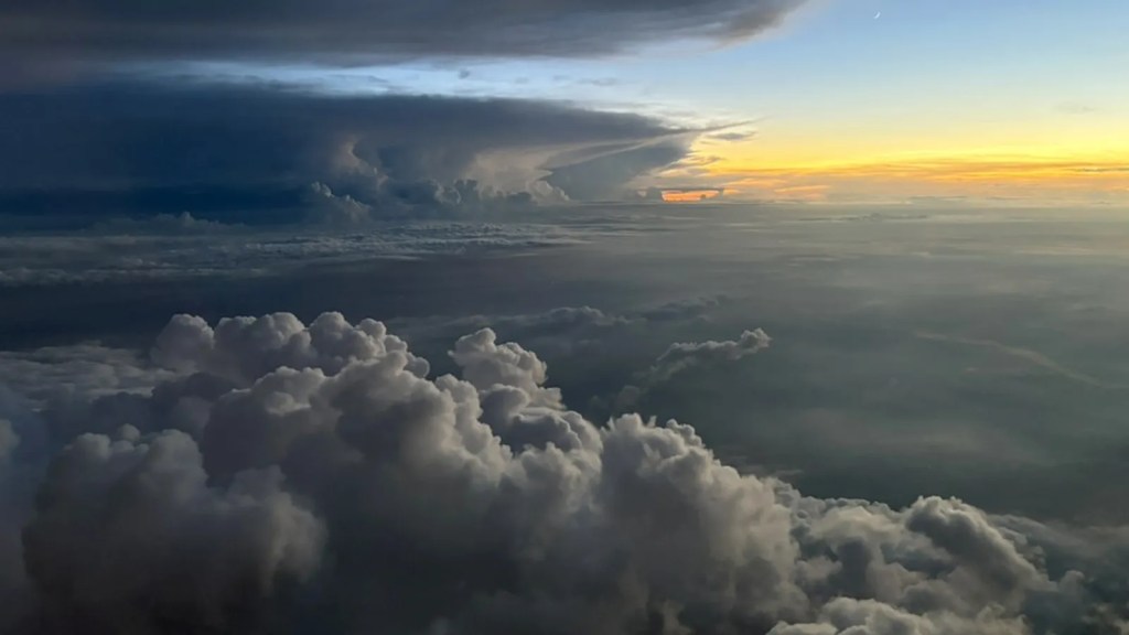 - A few months ago while traveling in Vietnam, my wife and I were on a flight that took off in a heavy storm. The turbulence was severe, and dark clouds, heavy rain, and lightning could be seen from our window. After a long and volatile ascent, our airplane finally rose above the storm clouds and emerged to this glorious vista. We were reminded once again of our Heavenly Father and Jesus Christ and felt Their great love for us.